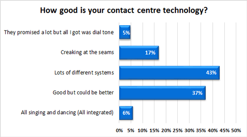 According to our poll, only 6% of contact centre professionals were “all singing and dancing” about the technology that was available to them, which would have been integrated efficiently.